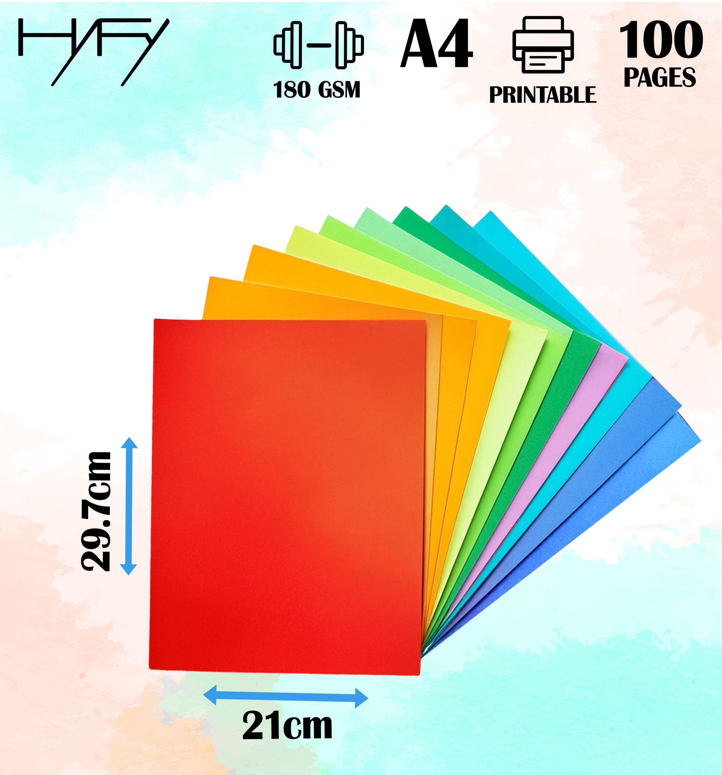 A curated collection of 10 vibrant colors, with 10 sheets each, crafted from thick 180gsm cardstock for superior durability. The smooth, printer-friendly surface handles ink, markers, and cuts flawlessly—ideal for professional crafts or bold DIY projects.