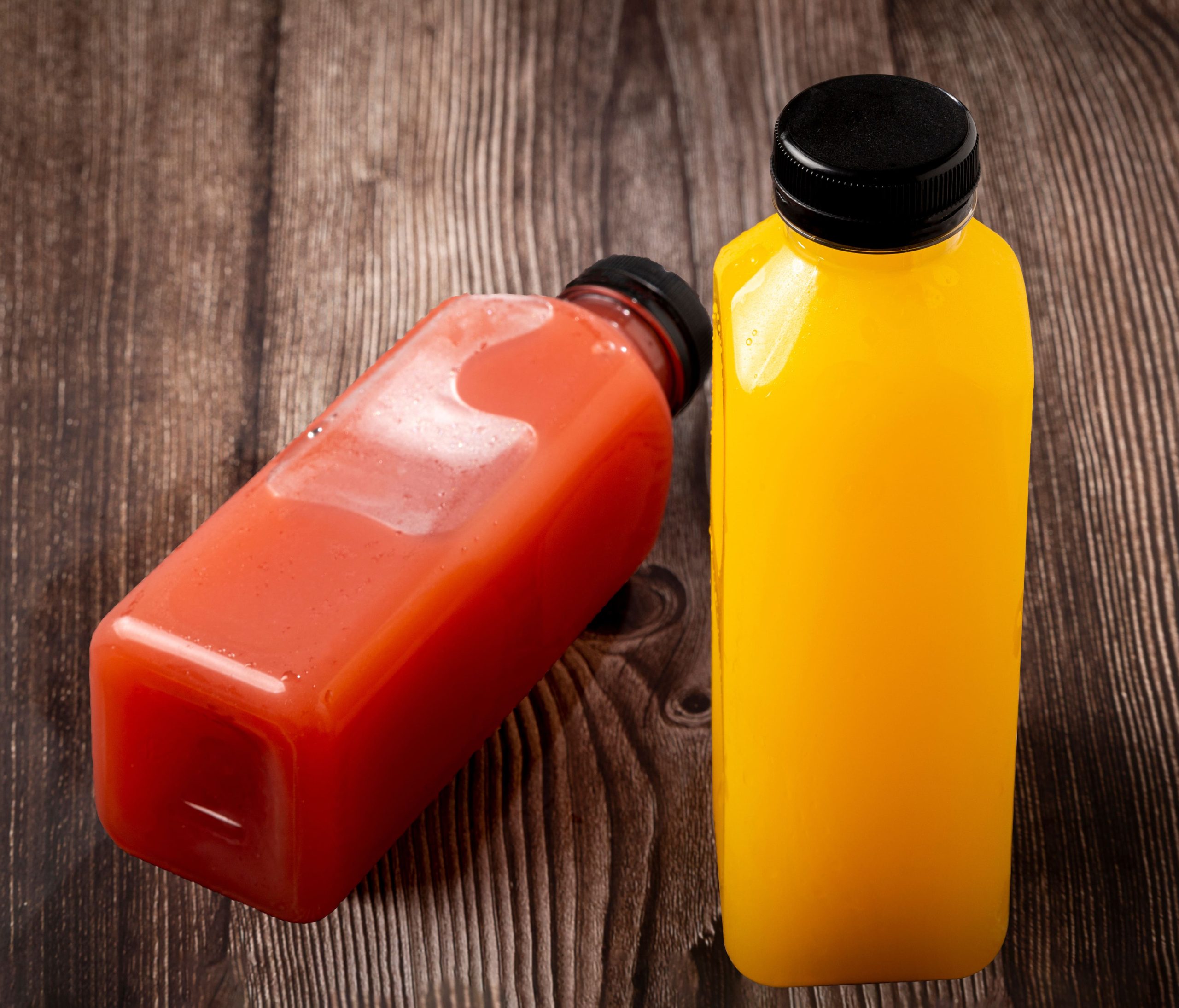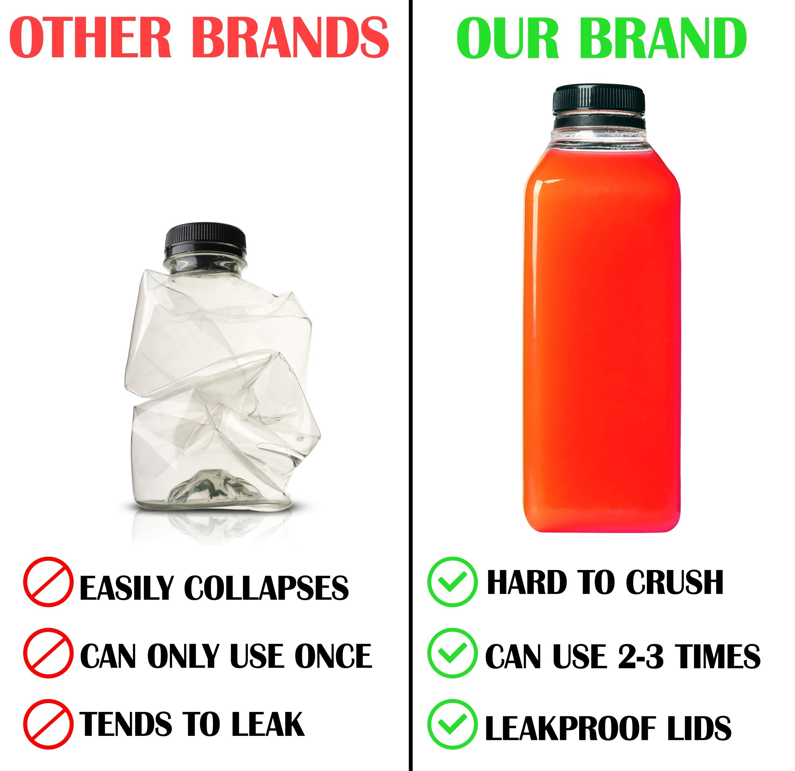 Practical plastic drink bottles with secure screw-top lids to prevent leaks. Made from durable yet lightweight plastic that’s safe for beverages.